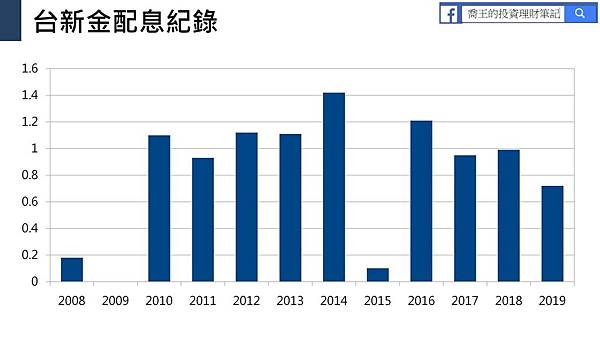 以台新金為例,過去18年內有連續12年的配息紀錄,表現還算OK,但配息不算穩定,遇到經濟不景氣時可能無法配息(ex: 2006年、2007年、2009年無配息紀錄)。